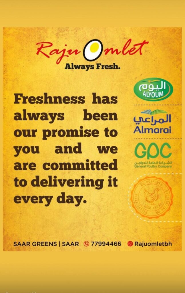 Whether you’re searching for the best breakfast restaurant in Bahrain, exploring street food restaurants in Saar Bahrain, or simply craving flavourful Indian comfort food, Raju Omlet Saar welcomes you with warm hospitality and unforgettable dishes. Visit us at Saar Greens, Saar, and discover why Raju Omlet is celebrated across the GCC.